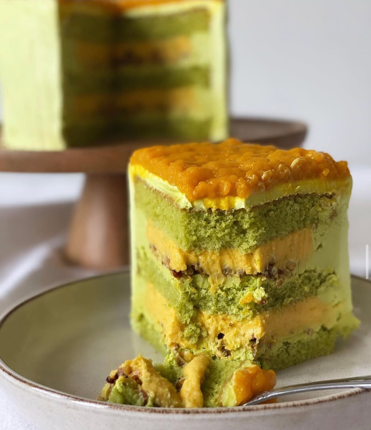 Фисташковый бисквит, крем с манго, и карамелизированные фисташки
