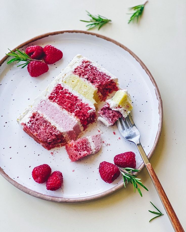 Торт с фисташковым бисквитом, малиновым конфи и нежным фисташковым кремом