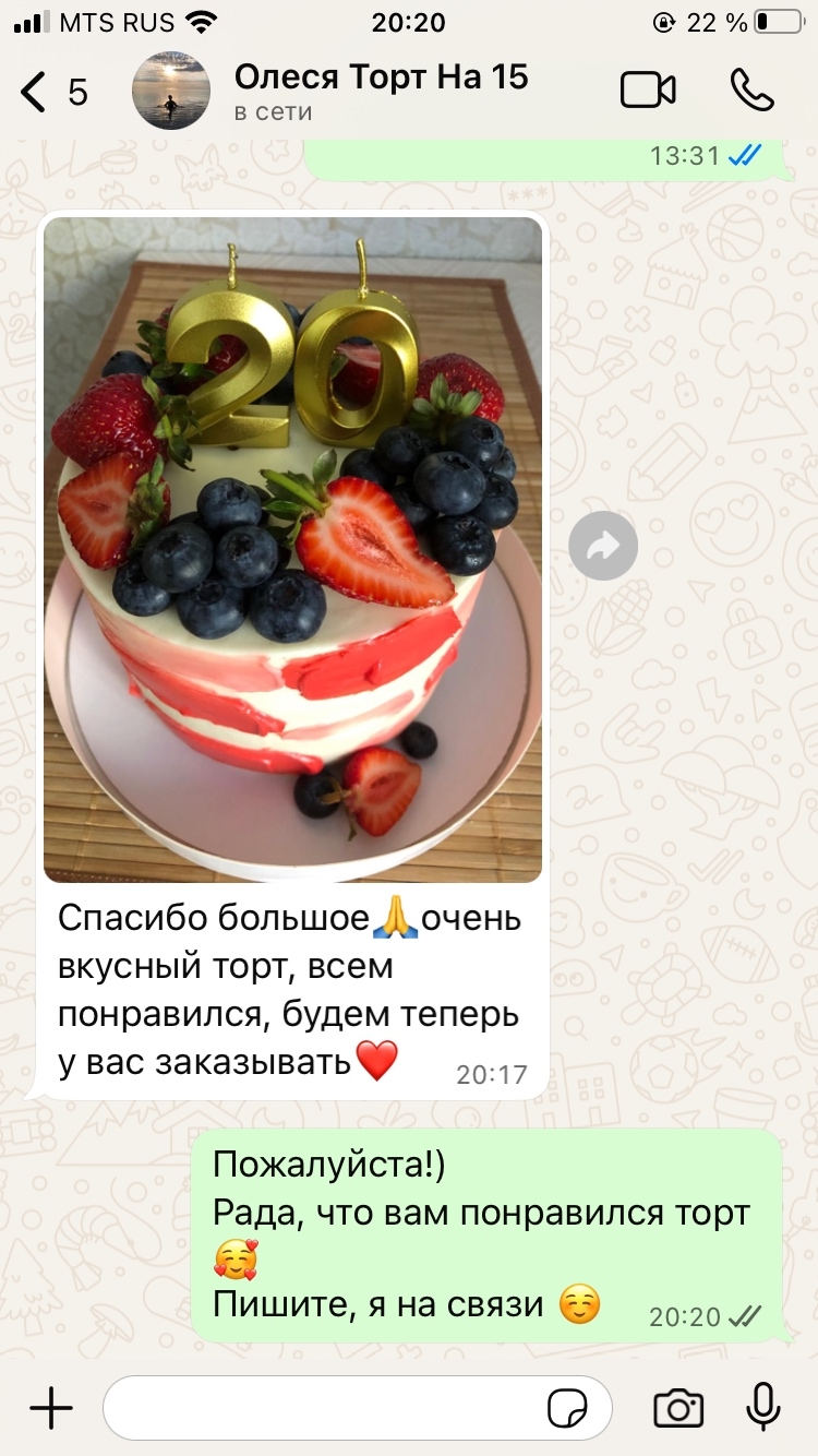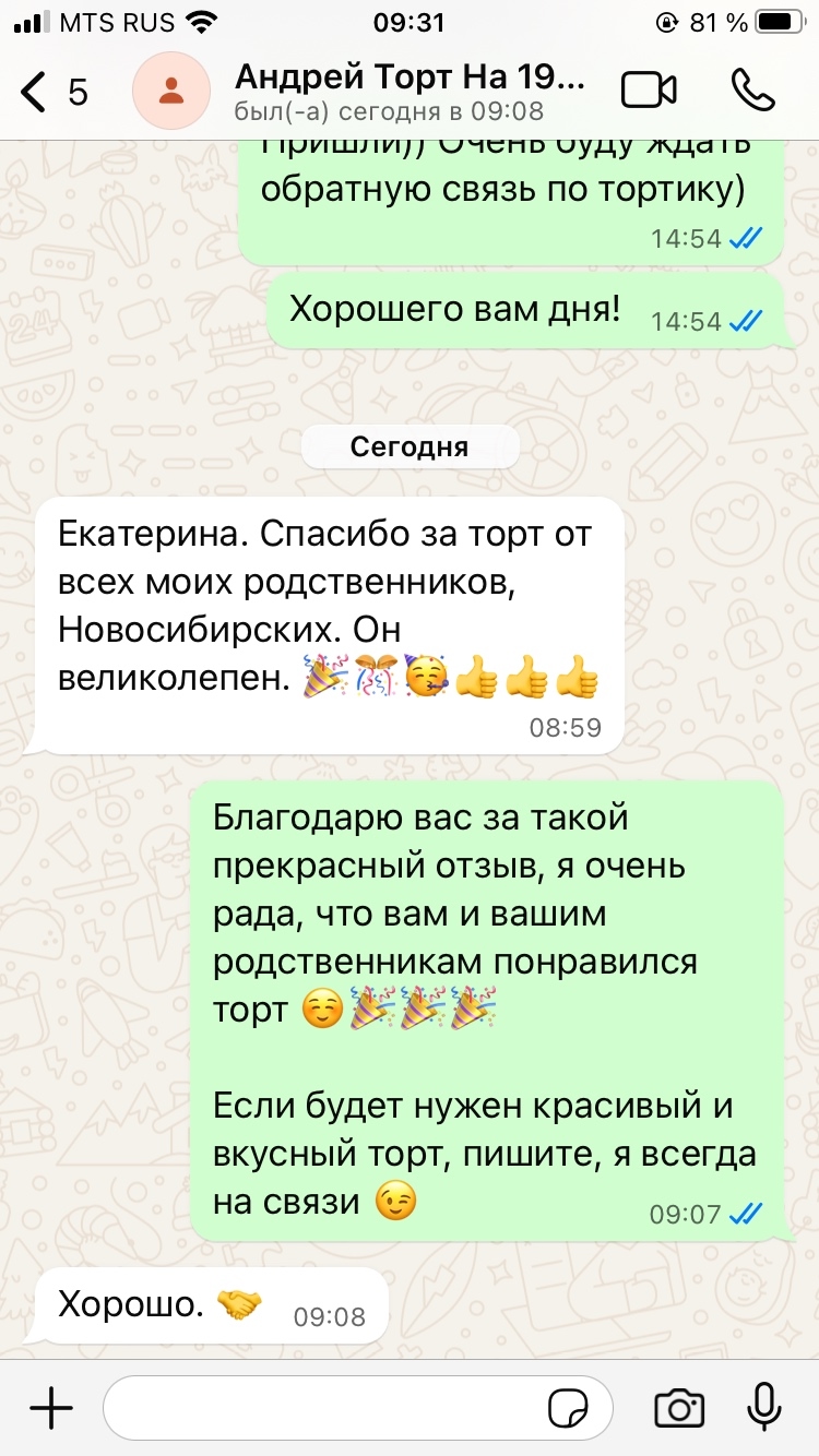 В указанное время торт будет готов, я буду вас ждать!
